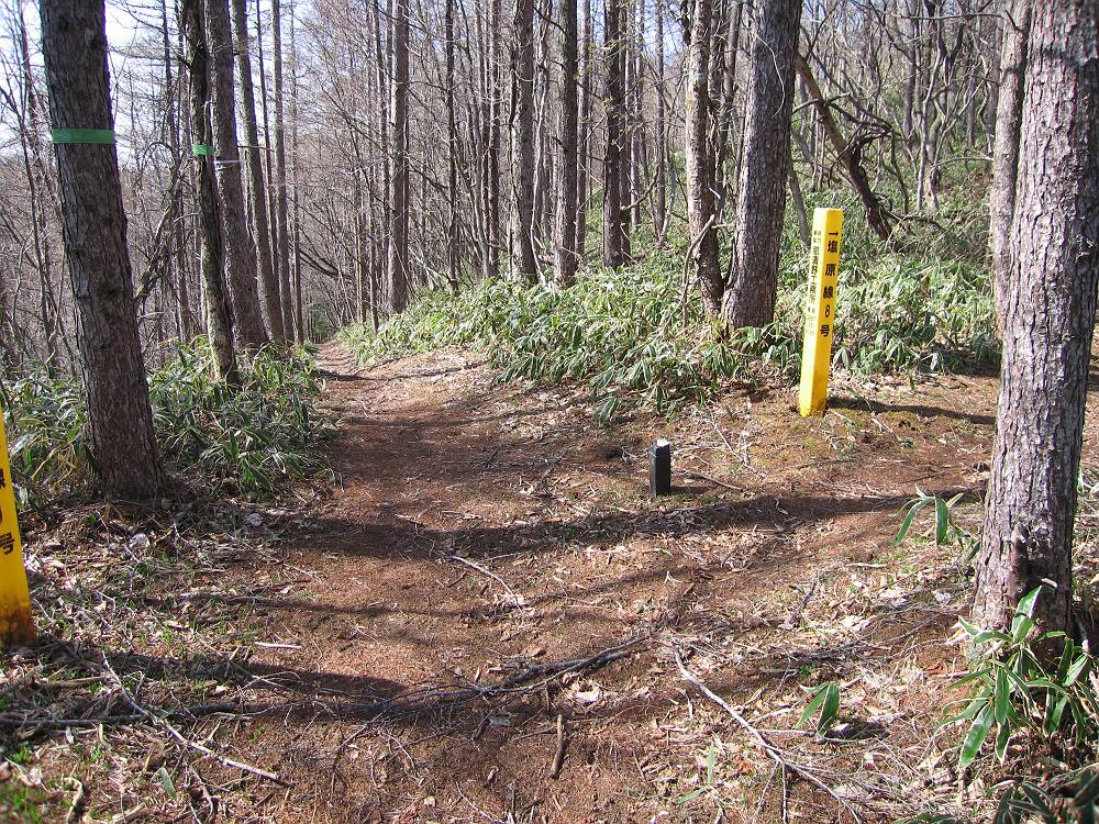 ここから緩い下りの後、ヒノキ林を通り、カラマツ林になります。