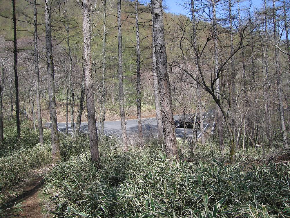 この少し手前に車を止めて、登山開始。