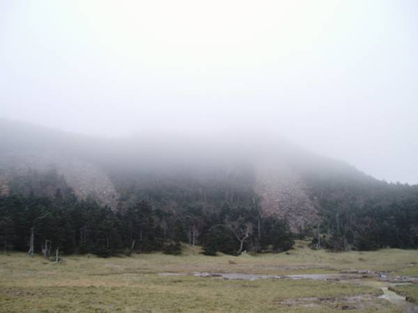 男体山山頂付近は相変わらずガスに包まれている。