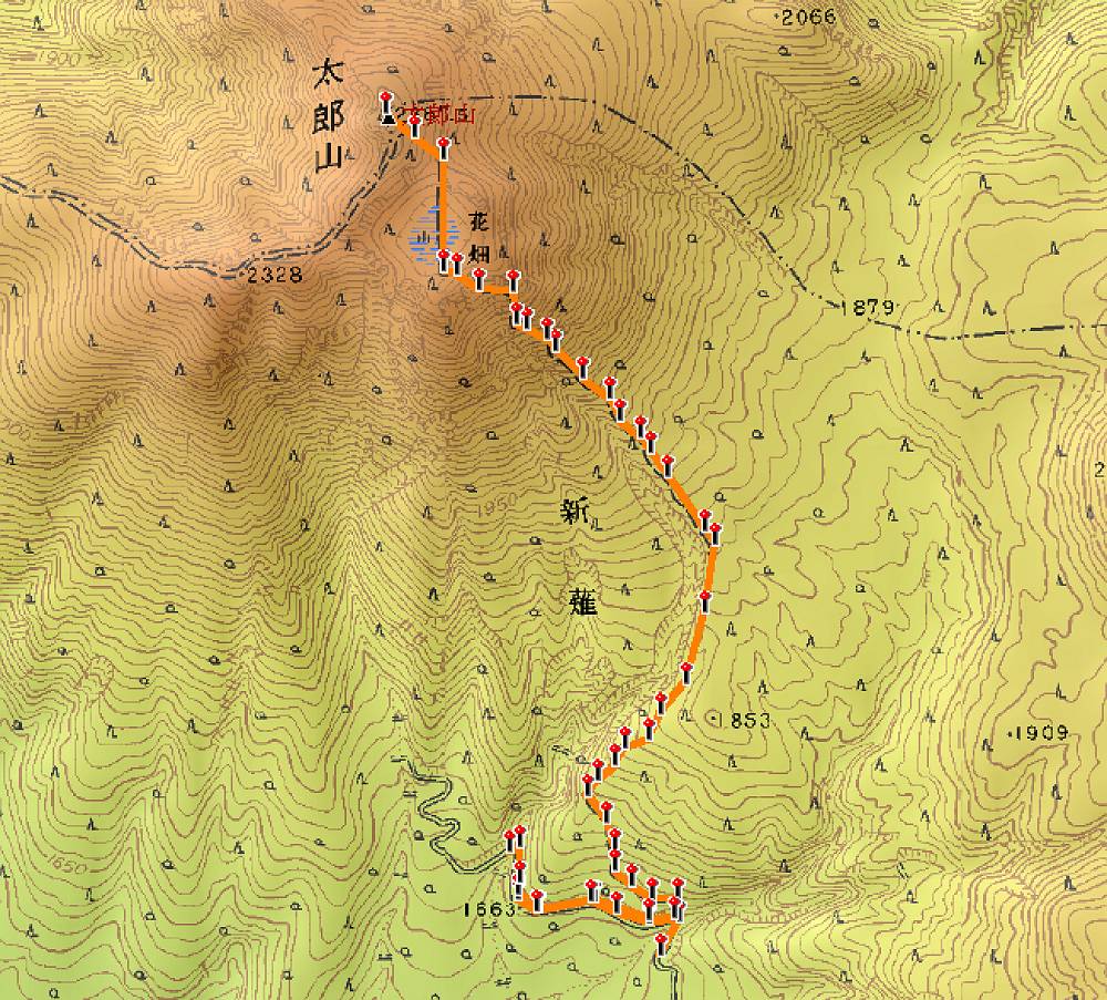 行程:太郎山登山口8:15--新薙9:30--お花畑9:38--太郎山9:57--お花畑10:30--新薙10:50--太郎山登山口11:20(新薙~お花畑は多分間違ってます)